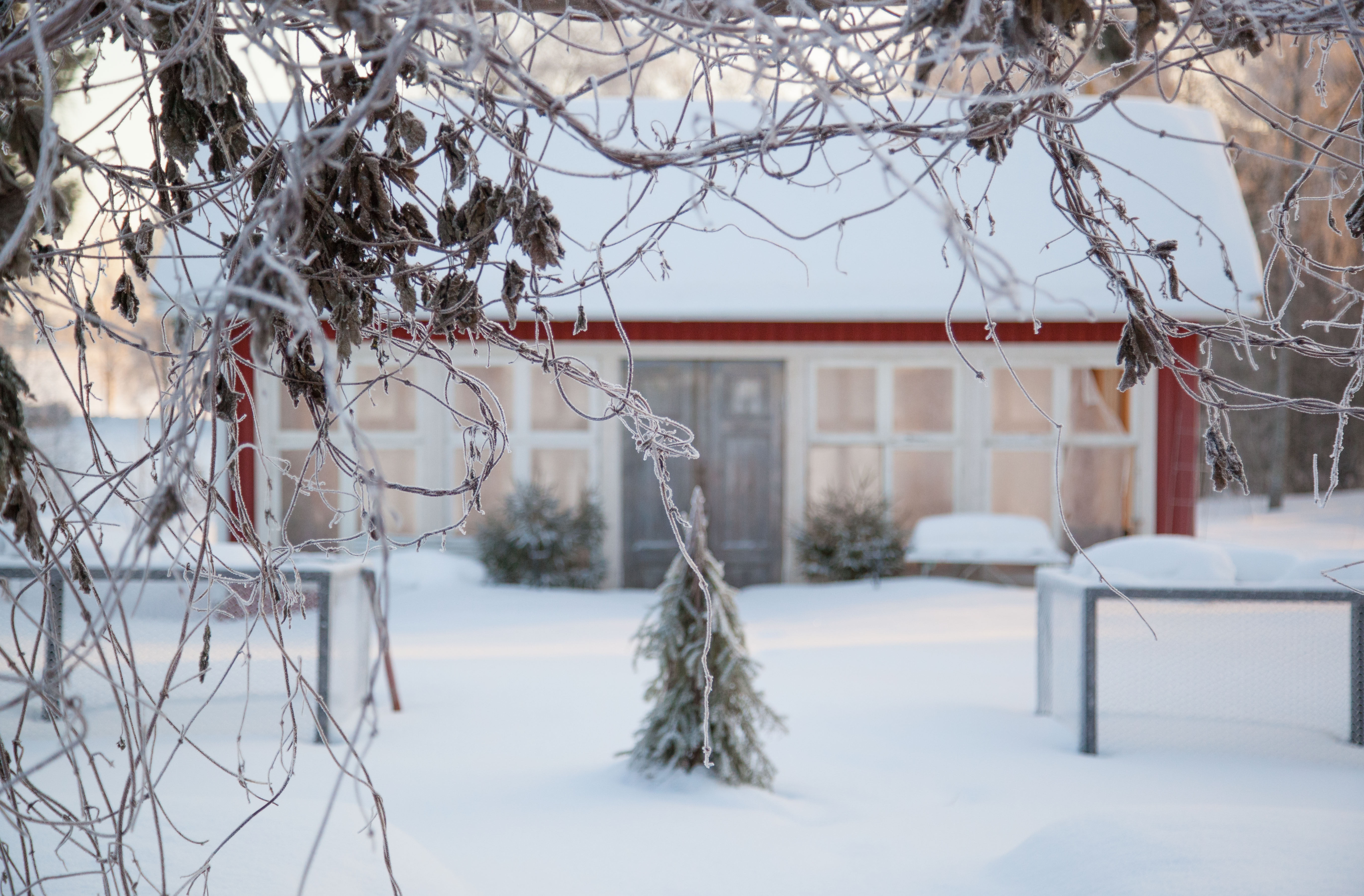 Tänk att väldigt snart kommer den där takdroppstiden. Då solen når över topparna på den gamla syrenen. Man kan lägga ut ett fårskinn på pannrumstrappen eller sparken och sitta här mot solväggen och känna hur det verkligen värmer i ansiktet. Kisa mot köksträdgården och växthuset, drömma sig bort och smida massor med odlingsplaner. Jag ser så mycket fram emot att få ha växthuset ända från start den här säsongen så vi kan driva upp plantor där inne.